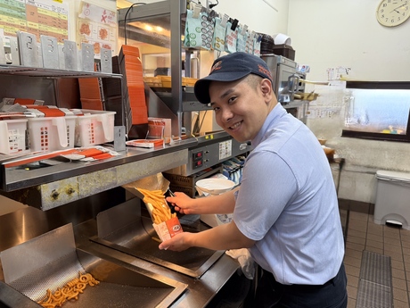 ▼勤務時にお得な値段でハンバーガーやポテトが購入出来る食事補助制度有